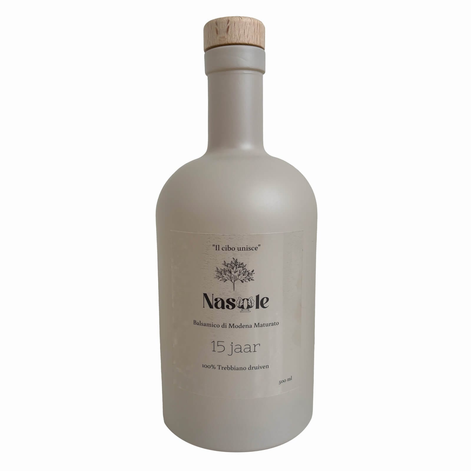 Deze gerijpte balsamico wordt ingekookt. Dit proces vervangt het rijpen op houten vaten en zorgt ervoor dat de azijn kan indikken. Hierdoor wordt de smaak ook iets zoeter en de structuur iets stroperiger. Deze balsamico wordt gemaakt van 100% Trebbiano druiven en is heerlijk over o.a. Parmezaanse kaas, salades en gegrild vlees zoals bistecca fiorentina.